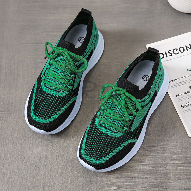 Women Sneakers Lace-up Mesh Green Black Sports Shoes